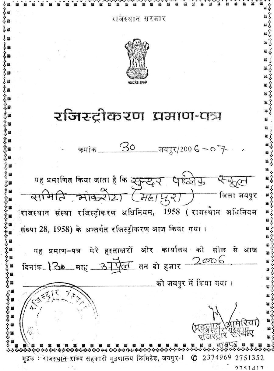 Society Registration Certificate: